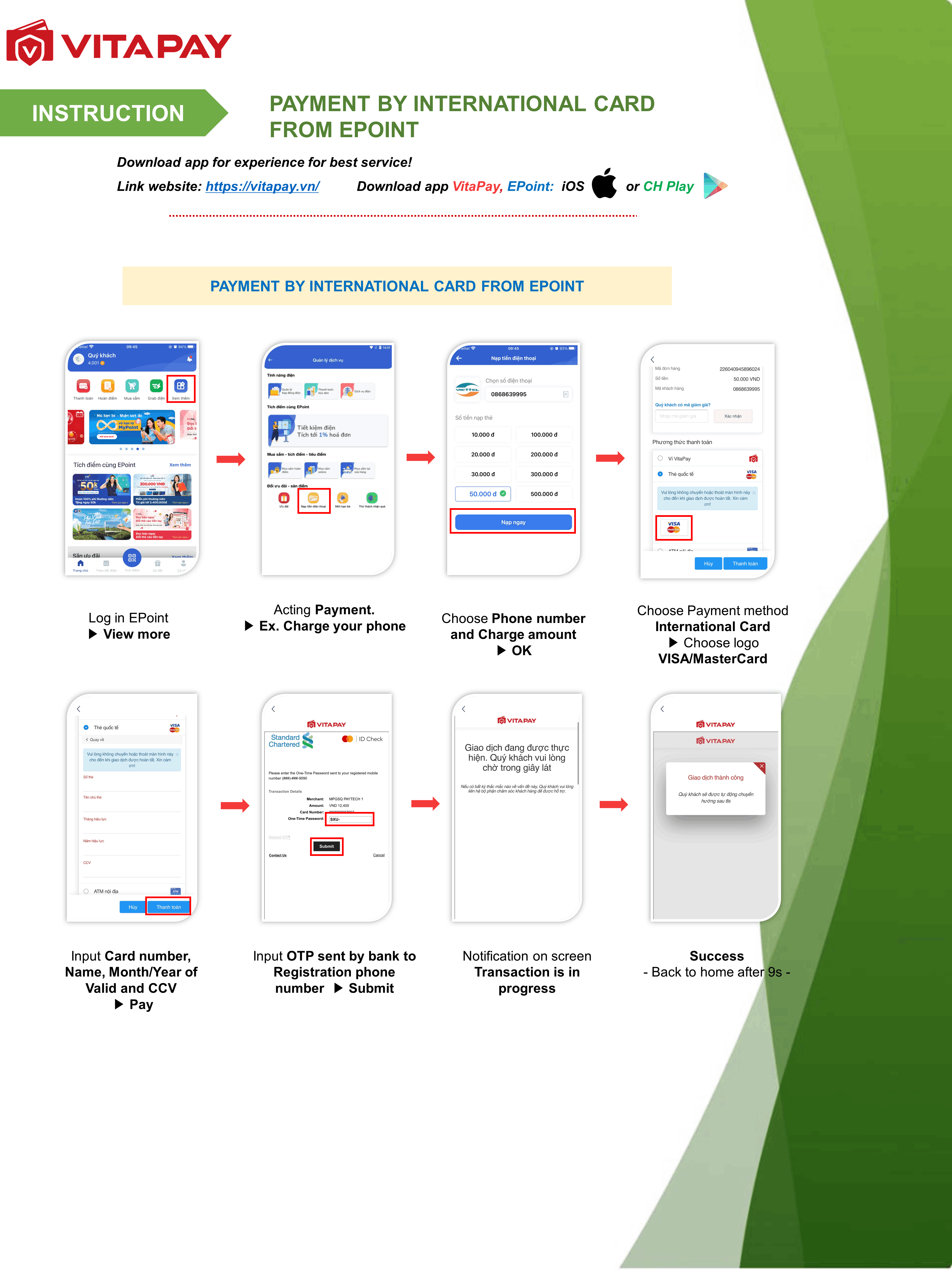 Note: Above information and phone number registered E-wallet Vitapay have to be same with the one registered at linked bank